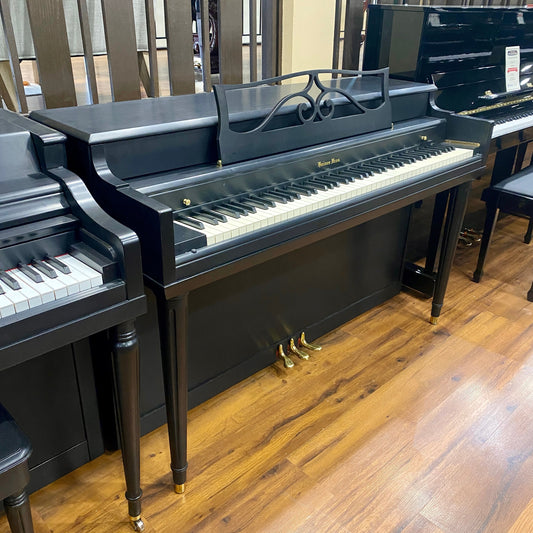 SOLD 1958 Mueller & Haines 37" Satin Black Spinet Piano
