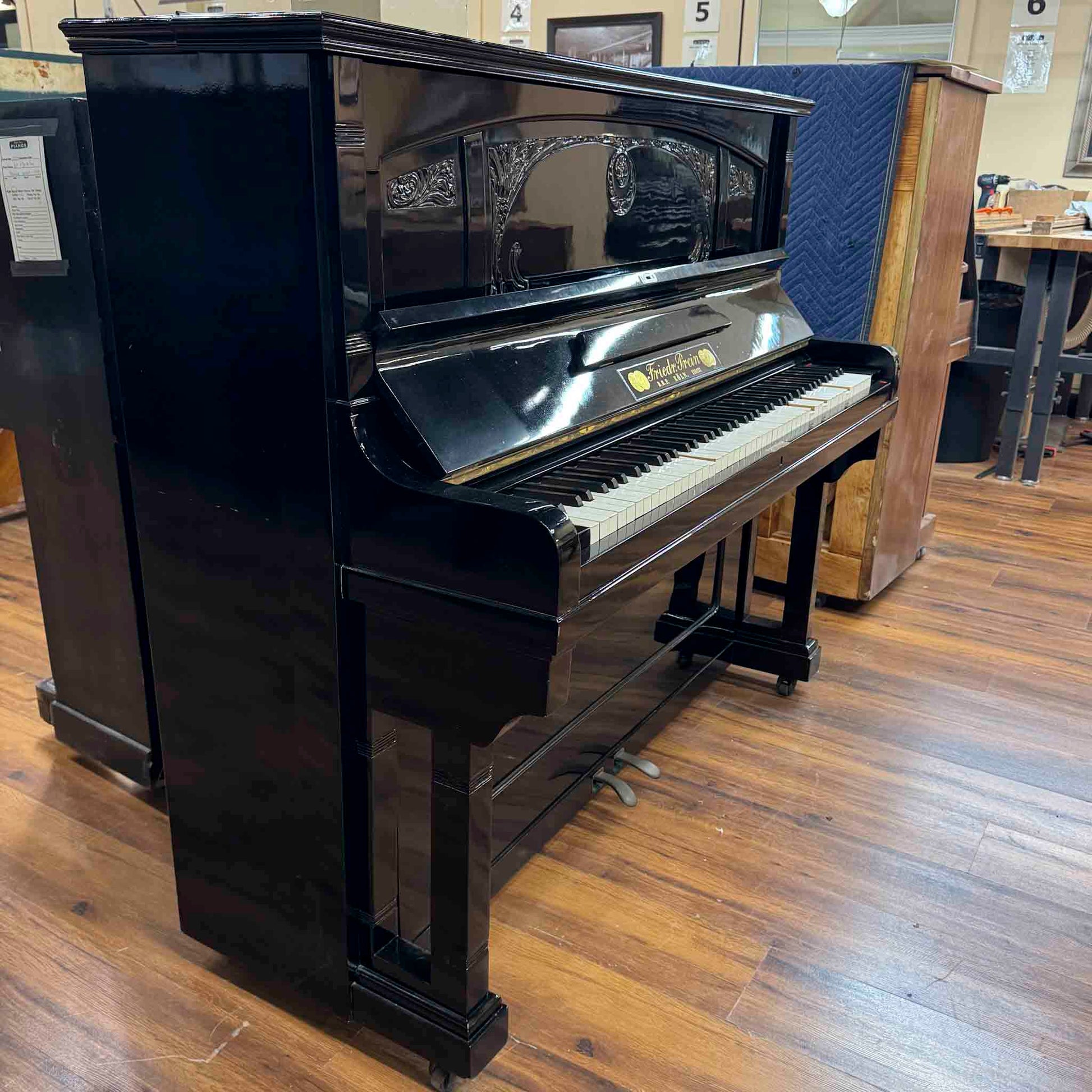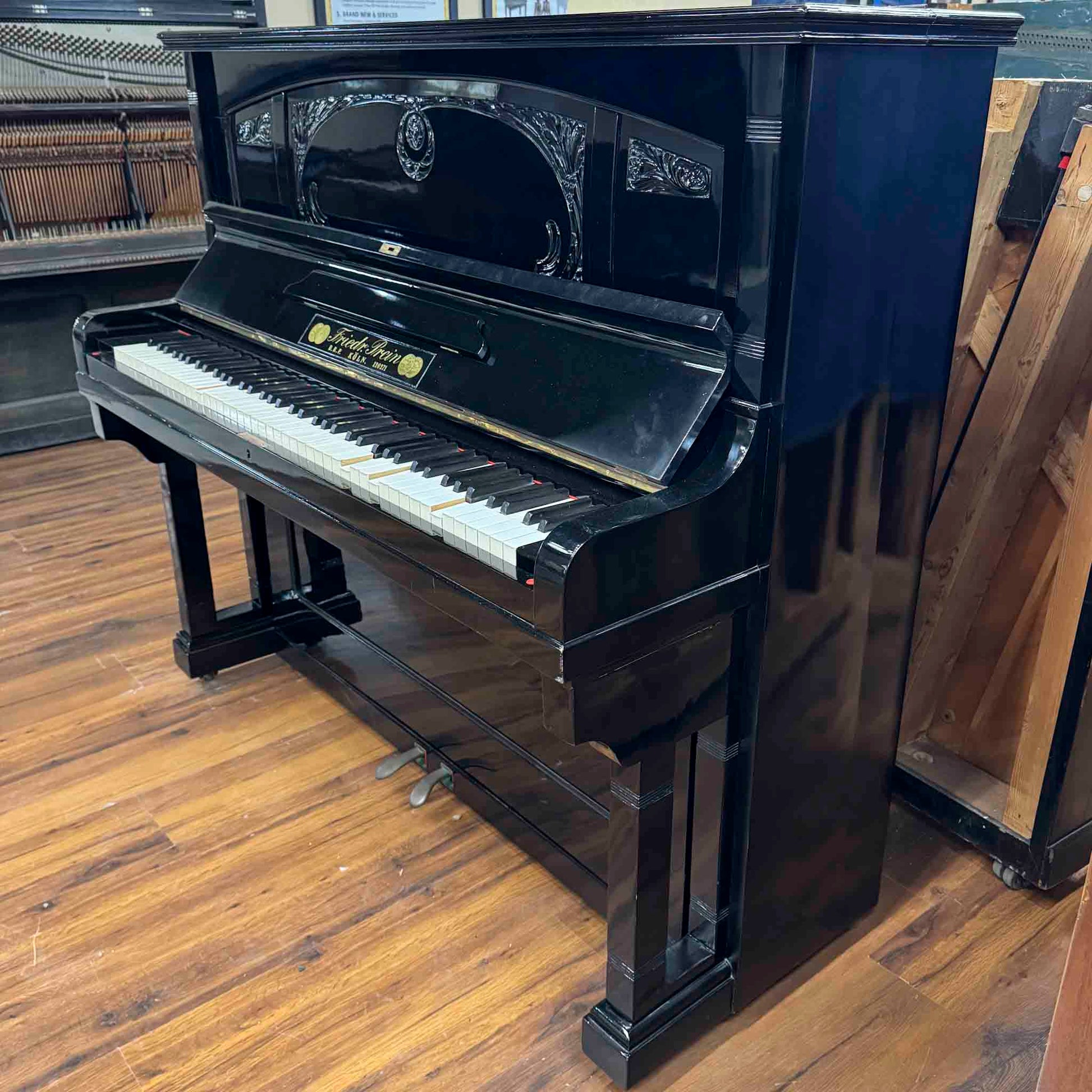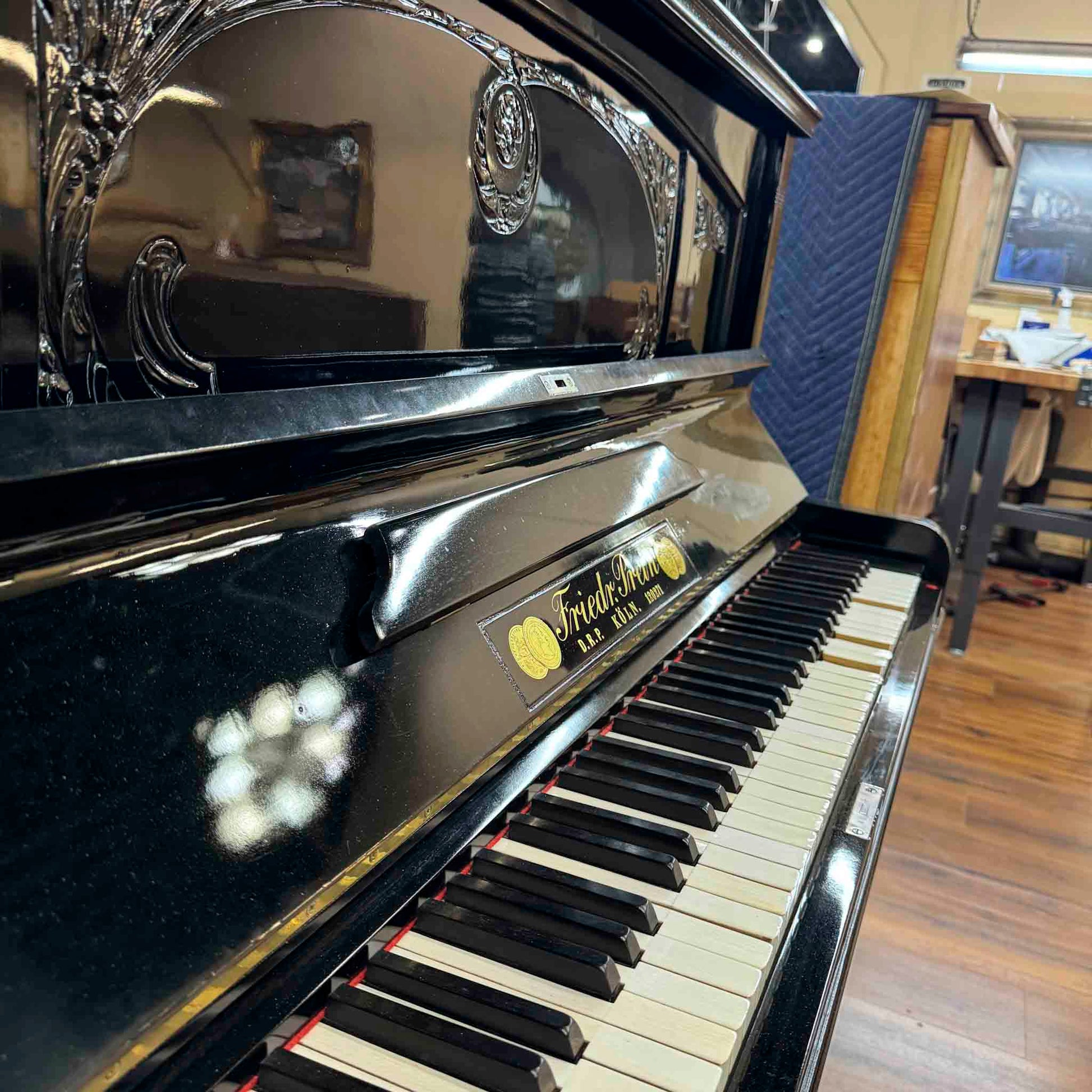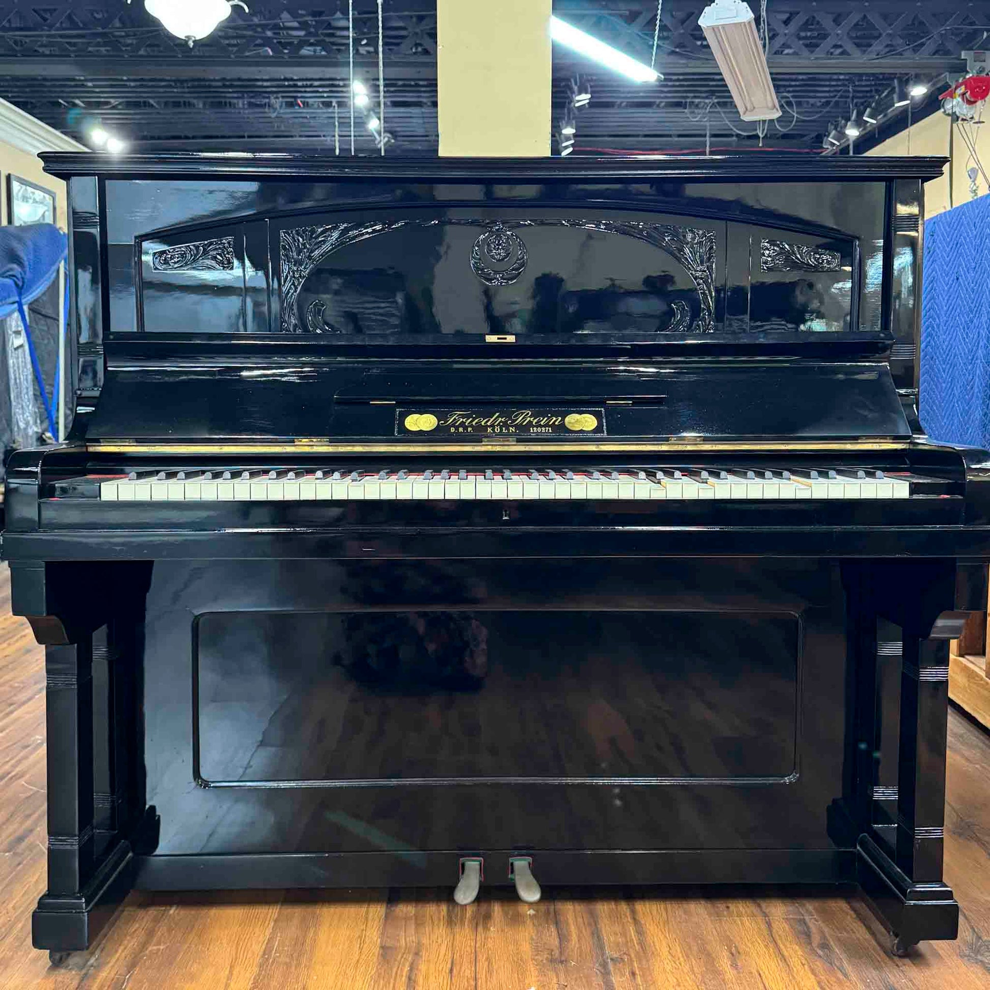 CURRENT SHOP WORK - 1909 Friedrich Prein 51.5" Polished Black Commissioned Upright Piano